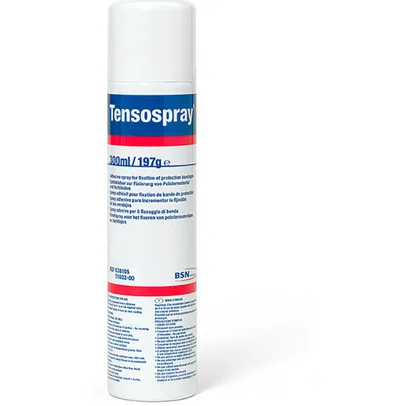 Tensospray is a handy, transparent spray that lays a protective layer over the skin, making tape and bandages easier to remove and reduces skin irritation.